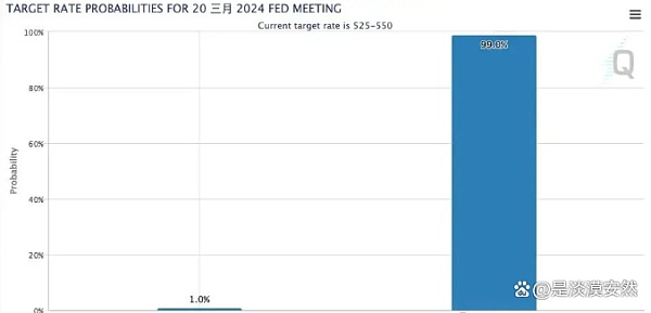 数据统计显示,当前市场普遍预测本月美联准不会再次升息,投给稳定利率,也就是「暂停升息」选项的人数共占99.0%,仅有1% 的人认为本月美联准有机会降息。