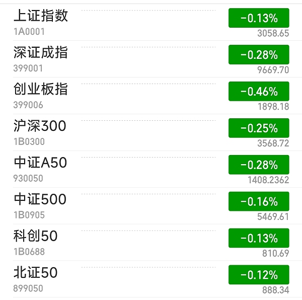 查查配官网3月20日电 周三,A股三大指数集体低开。上证指数跌0.13%,报3058.65点;深证成指跌0.28%,报9669.70点;创业板指跌0.46%,报1898.18点。