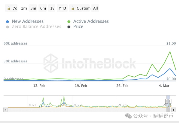 柴犬的下降趋势 导致许多人受伤,这可以解释网络活动的大幅下降。IntoTheBlock的区块链数据 显示,自 3 月 5 日起,活跃地址数量下降了 62.4%,从 49.53k 降至 18.64k。