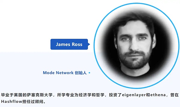 在团队方面,Mode 领英页面共有 15 位员工,但其核心员工人数并不多,从员工的根据地来看,他们可能采用了远程工作的方式。创始人 James Ross 能够投资 eigenlayer 和 ethena,其行业人脉应该不错。