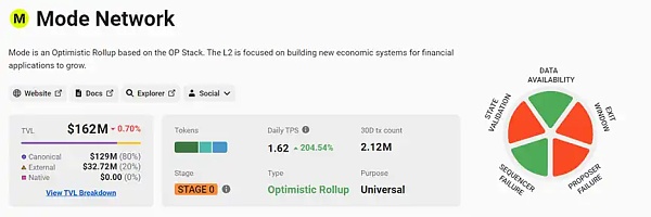 Mode 是一个使用 Op Stack 并专注于 Defi 赛道的模块化 Layer2 项目,Op Stack 所创造的 Op 超级链已经吸引了许多知名项目入驻,有利于扩大生态规模。与此同时,模块化已成为当前牛市的一个关键叙事。公链性能的提升不应该只依赖于单一的公链,而是通过模块化的方式来充分发挥各个公链的优势。因此,模块化项目在当前市场表现出了不俗的潜力。