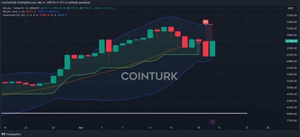 3 月 18 日,比特币从上升通道的支撑线下跌,表明空头试图将该区域转变为阻力位。但他们没能做到这一点。20 日均线(65,271 美元)是关键区域,突破该区域的价格目前目标为 69,000 美元和 73,777 美元。收盘价高于此水平将使 76,000 美元和 80,000 美元的目标重新回到议程上。