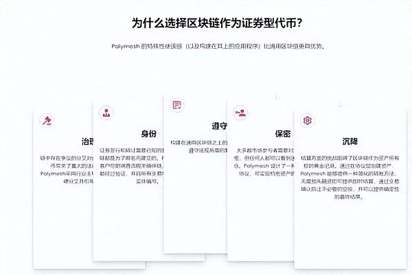 Polymesh是一种专为安全令牌构建的区块链,针对机构级许可区块链,主要关注受监管资产。它旨在解决与安全令牌化相关的一系列挑战,包括治理、身份验证、合规性、隐私和结算等方面的问题。相较于传统流程,Polymesh旨在简化流程,并提供新的金融工具,超越了ERC-1400安全令牌标准。