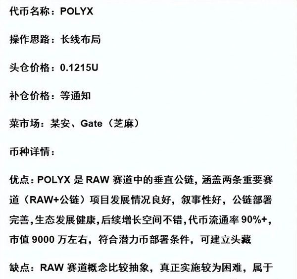 RAW赛道是指以实物资产作为支撑的加密资产,这些资产通常是实际存在的商品、黄金、房地产等,通过区块链技术进行数字化,以实现更高的流动性和便捷性。POLYX作为RAW赛道中的一员,可能受到了投资者对实物资产数字化领域的兴趣和追捧。