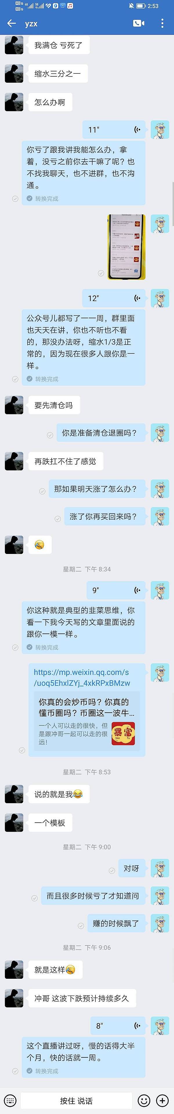 你满仓了亏麻了来问我,冲哥也束手无策啊!你赚钱的时候去哪里了?或者说你有仓位的时候去哪里了?现货满仓被套资产缩水百分之30,就是这一波大部分韭菜的真实写照!(而且大部分人跌了30就想着割肉离场,然后涨了再去买回来,典型的追涨杀跌!妥妥的小韭菜一个!)