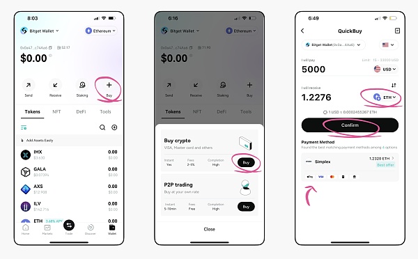 3.输入您要购买的金额,确认购买,然后选择付款方式。