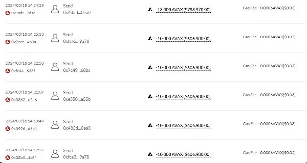 Avalanche 募资项目 Sener 募资了约 93000 枚 AVAX,价值约 480 万美元,但开盘时,创始人仅向 LP 池添加了 20000 万枚 AVAX 作为流动性,而后便转移了其剩余的 AVAX,导致项目代币 SENDER 仅开盘轻微上涨,就进入全面抛售阶段。