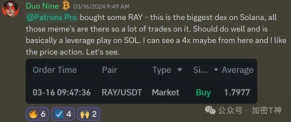 在这个例子中,你可以购买 RAY 或 Raydium 代币,因为在那里,所有 Solana 上的 meme 币都在交易。不要购买 Solana 上的 meme 币!如果你这样做,你就成了赌场的玩家。