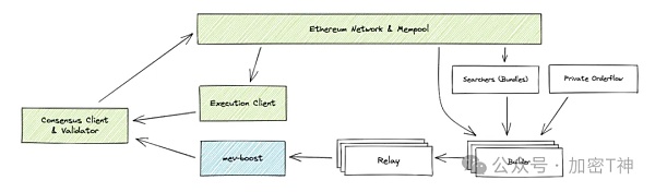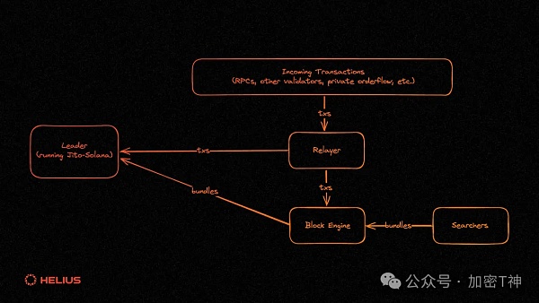 Solana 上(对于运行 Jito-Solana 客户端的验证者)区块构建供应链如下所示: