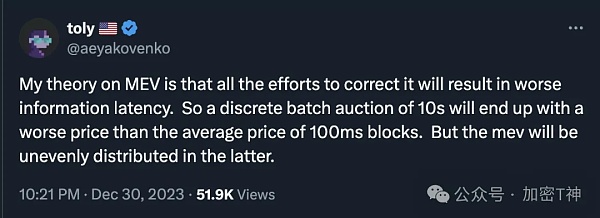 尽管Solana可以加快交易执行速度并减少某些类型的MEV机会,但这也可能会加剧延迟驱动的中心化风险。在这种情况下,验证者和搜索者可能会寻求整合基础设施,以获取竞争优势。然而,我们仍然远离基础设施和相关机制达到竞争性稳定平衡的目标。