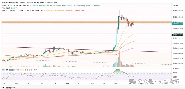 在小幅牛市之后,市场似乎已经停止上涨,因为多头出现了一些疲软。尽管如此,各大代币一直在努力触发复苏阶段,柴犬就是其中之一。从低点反弹后,SHIB 价格一直在上涨,表明多头正在恢复动力,因此可能很快就会出现大幅上涨。