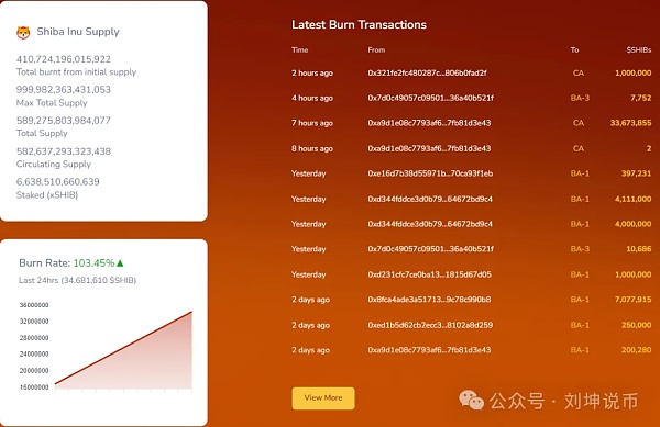 1、SHIB燃烧量猛增103.45%