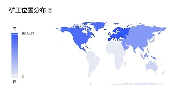目前,全球矿工数排名前三的大洲分别是:欧洲(898,417)、北美洲(765,373)、亚洲(490,661)。