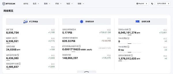3月22日,官方数据浏览器BTFS SCAN显示,BTFS总矿工数超803万,全网合约总数超1.48亿,全网总收益超24.5万亿BTT。