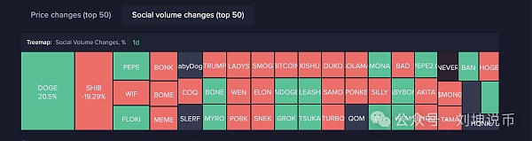 AMBCrypto 发现,在市值排名前 50 的 meme 币中,DOGE 在审查期间的社交量最高。