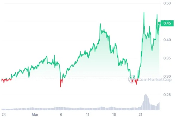Dusk 是本周值得关注的低市值加密货币之一,因为该代币今天着眼于更高的价值。在过去 24 小时内,DUSK 的价格上涨了近 14%,使其在 0.4 美元区间的阻力位之上达到新的价值。同样,最近24小时内该资产的交易量也有约50%的补充性增长。