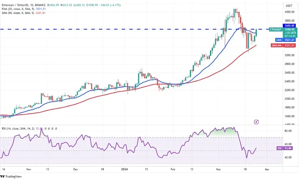 ETF 方面的负面情绪在价格中显而易见。SEC明确暗示这不会像 BTC ETF 那么容易。以太坊价格的积极因素是 20 日均线已经回撤。只要价格保持在 3,521 美元以上,ETH 就可能持续存在更大的上涨潜力。