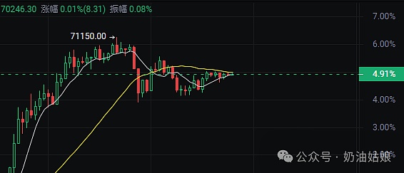 截稿前,涨幅有所收敛,现报70,241 美元,近24 小时上涨5.36%。