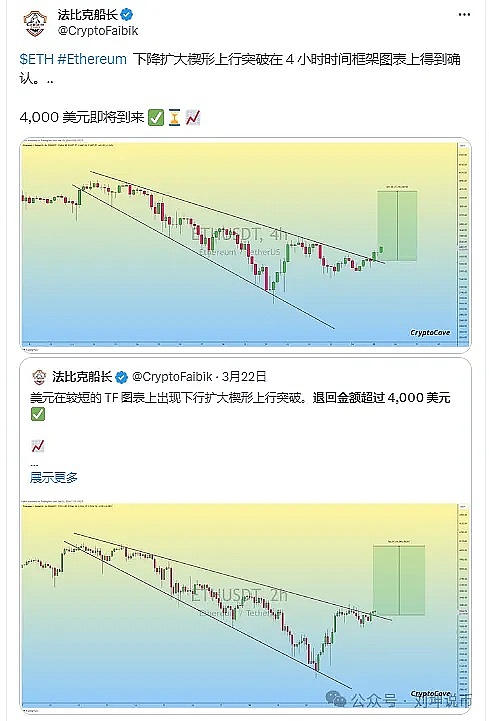 2、这一结论是根据 ETH 四小时烛台观察到的看涨模式得出的。
