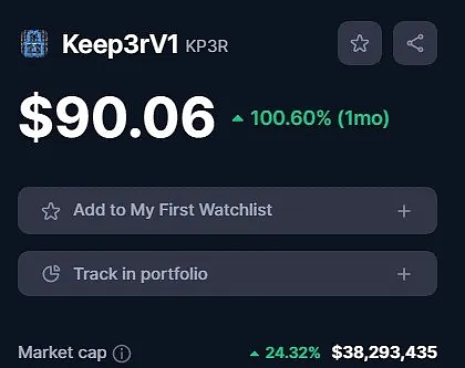 截至最新更新,Keep3rV1(KP3R)代币的交易价格达到了90.06美元,市值已达到3800万美元。