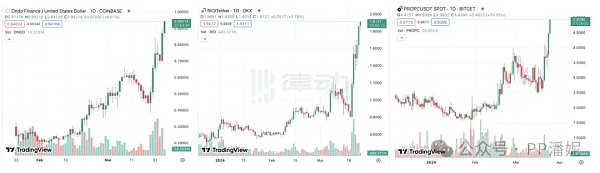 3 月 25 日,RWA 协议 ondo finance 代币 ONDO 突破 0.9 美元,截至撰稿时报价 0.93 美元,24 小时涨幅达 29%。除了 ONDO,其他 RWA 协议代币也获得了亮眼的涨幅。