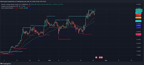 分析 STX 2024 年迄今的增长情况表明,该代币一直在飙升,飙升超过 130%。 1 月 1 日,其价格仅为 1.59 美元,而现在的交易价格远高于 3.60 美元。