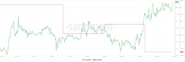 考虑到 EMA 线和最近的金叉的有利对齐,有合理的预期 STX 可能会扩大涨幅。 然而,与所有市场分析一样,这种乐观的前景仍然取决于该资产将其势头维持在关键支撑位之上。