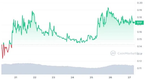 目前,$BBL 交易价格为 0.172 美元,24 小时交易量为 738 万美元,市值为 2004 万美元。在过去 7 天里,$BBL 价格飙升了 18.29%。