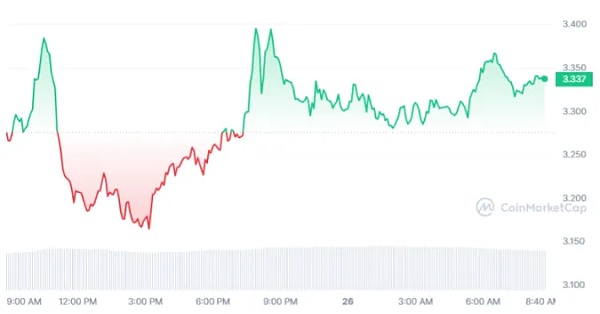 截至报告发布时,LDO 上涨了 1.57%,交易价格达到 3.34 美元。此外,该代币的交易量在过去 24 小时内增长了 8.24%。自上周以来,该代币一直处于积极的轨道上。
