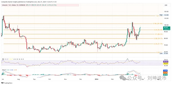 随着比特币价格维持在 7 万美元以上,莱特币等近亲正在攀上新的高度。随着 LTC 价格连续第五个上涨日,上涨趋势继续增强,可能很快就会突破 100 美元的心理关口。