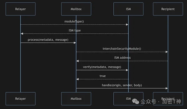 Hyperlane利用链间安全模块(ISMs)来实现安全保护。这些智能合约验证消息是否确实来自源链,并将其传送到目的链。开发者可以根据应用的特定需求选择特定的ISM来定制Mailbox的默认ISM。