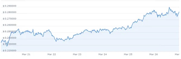 就市场表现而言,ALGO 本月迄今的指标一直积极,上涨了 36.64%。该代币目前交易价格为 0.284245 美元,交易量为 2.1917 亿美元。