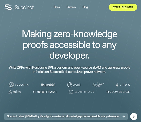 去中心化的证明者网络Succinct: 已完成 4300万美元A轮融资,由Paradigm领投。Robot Ventures、Standard Crypto、Geometry、Bankless Ventures、ZKValidator等数家机构参投;Succinct统一了证明供应链,为使用零知识证明的 rollup、协处理器和其他应用程序提供了高度可用的证明生成基础设施和一流的定价。