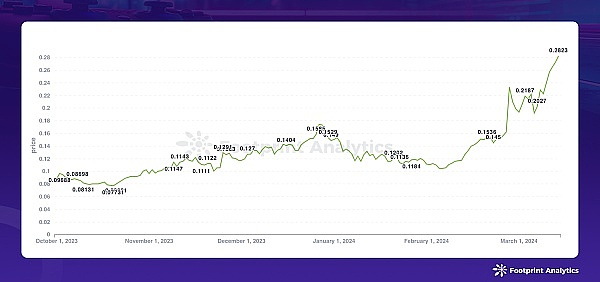 数据来源:过去 180 天 DAR 代币价格 - Footprint Analytics