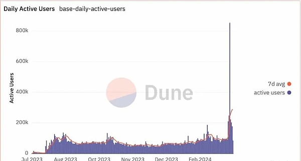 用户量是衡量一个网络受欢迎程度和采用程度的重要指标之一。从用户规模来看,Base网络依托Coinbase的庞大用户基础,在主网上线后逐步积累了大量的活跃用户。