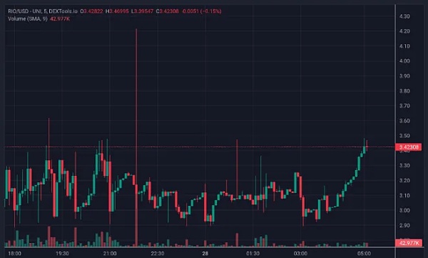 Realio Network (RIO) 的涨幅令人印象深刻,今天的交易价格为 2.97 美元,24 小时交易量为 5,235 万美元,市值为 1,954 万美元。此外,过去 24 小时内增长了 25.17%。