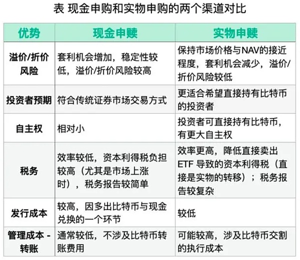 然而,在美国,尽管各申请方在早期的申请书中提出允许实物和现金两种申赎方式,但出于风险考量,最终都选择了更为稳妥的“现金”申赎方式。相比之下,香港的比特币现货ETF市场预计将以现金和实物多种申赎方式为主要优势。