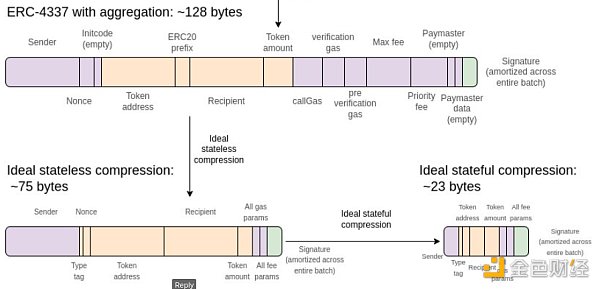 我之前写过数据压缩概述:简单来说,一笔交易会占用大约 180 字节的数据。然而,有一系列的压缩技术可以用来分几个阶段减小这个大小;通过最佳压缩,我们有可能将每个事务的大小降低到 25 个字节以下。