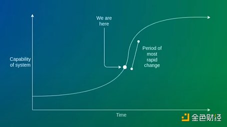 在2022 年夏季 ETHCC 的演讲中,我做了一个演讲,将以太坊的发展现状描述为 S 曲线:我们正在进入一个非常快速的转型期,在快速转型之后,发展将再次放缓,因为L1 得到巩固,开发重新聚焦于用户和应用层。