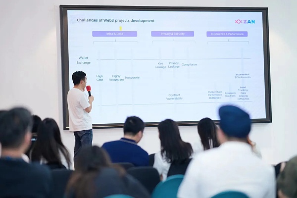 在活动现场,ZAN CTO Ethan、Layer1公链Artela CTO CP、社交基础设施UXLINK Co-Founder、Crypto项目数据服务商RootData合伙人Hunter等围绕“聚焦Web3基础设施,解锁DApp应用新场景”分别发表了精彩的主题演讲。