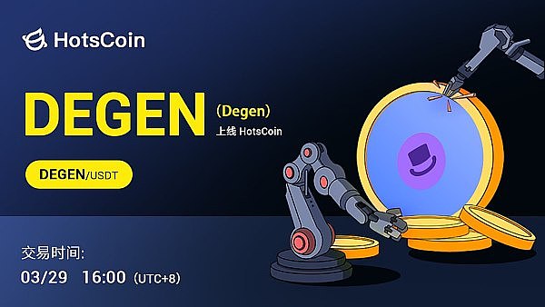 3月29日Degen (DEGEN)已经在HotsCoin上线,Degen (DEGEN) 是 Farcaster 去中心化社交网络上的非官方代币。作为一种基于 ERC-20 的代币,它旨在重塑 Farcaster 生态系统,并通过奖励 Casters 发布高质量内容来促进社区发展。目前DEGEN已在HotsCoin开放交易。