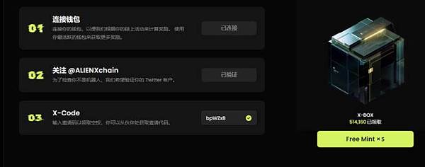 邀请奖励:一级邀请可以获得20%的奖励,二级邀请奖励为5%以及5个X-BOX铸造机会。