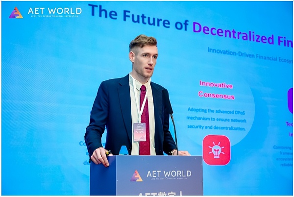 AET Foundation的技术顾问,Mr. Declan SIDEY,首先带来了对AET公链未来发展的深入分析。他详细阐述了如何通过区块链技术实现货币数字化,并探讨了这一进步将如何革新全球金融体系。SIDEY强调,AET公链在提升交易效率、降低操作成本以及加强金融安全方面的潜力,展望了它在未来数字经济格局中的关键作用。