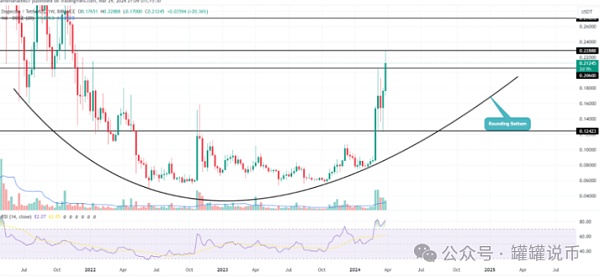 值得注意的是,该代币最近突破了 0.206 美元的阻力位,触及 28 个月高点 0.2288 美元,激发了投资者的热情。然而,如上所述,在出现修正之后,DOGE 价格可能会重新测试突破的阻力位和潜在支撑位。同时,持续突破可能会缓冲买家追求 0.27 美元的可能目标,并受到 0.3 美元的支撑。