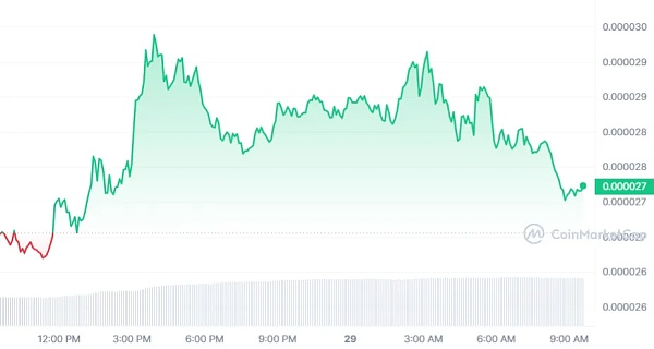 加密货币市场正在经历模因币价值的飙升,其中 Bonk 表现突出,涨幅显着。该代币目前交易价格为0.00002725美元,24小时涨幅为2.63%。在过去的一年里,它飙升了 5000%,成为加密货币市场表现最好的股票之一。