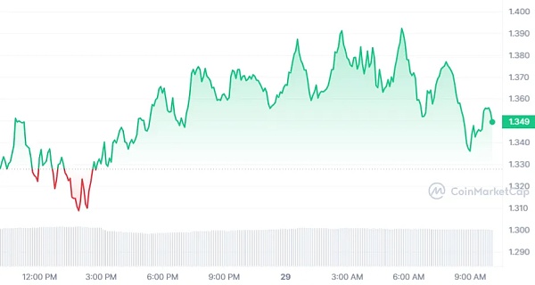 SuperVerse是专为游戏量身定制的原生区块链,最近见证了其价值的飙升。目前交易价格为 1.33 美元,显示出显着的上涨趋势。过去一周,该代币上涨了 10.01%,反映出投资者的兴趣和信心不断增强。