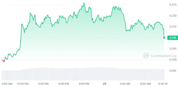 过去一周,DOGE近24小时涨幅分别为28.73%和5.79%,突破了0.20美元大关。狗狗币目前估值为 0.2118 美元,市值已升至 300 亿美元,日交易量为 58.6 亿美元。最近的价格走势意义重大,因为它点燃了看涨情绪,可能为目标为 1 美元大关的大幅反弹铺平道路。