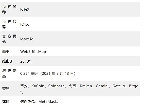 IoTeX(IOTX)是面向物联网(IoT)的可自动扩展和以隐私为中心的区块链基础架构。IoTeX致力于以轻量级、私密性和易扩展的颠覆式区块链底层技术,构建支持物联网应用的下一代区块链平台。IOTX通证是IoTeX网络生态的重要组成部分,用于转账、运行分布式应用、激励社区参与者。