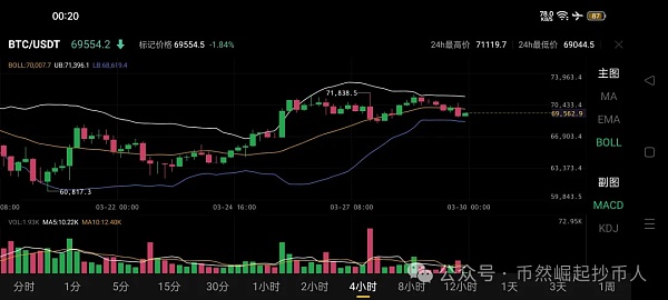 如图所示今日比特币行情分析,比特币4小时行情处于下轨附近震荡上行,附图所示处于下轨道附近持续震荡回调运行,根据附图显示绿能量柱处于回调上行趋势,币价MACD以及BOLL持续震荡有继续持续回调上涨趋势,当前币价仍旧处于震有向上走势运行,所以目前短线来看操作会有一波回调趋势,当前币价会在回调一波在操作上涨一波,个人操作建议综合来看指标比特币短线币价低多为主,今日买入建议操作买入低多一波,个人建议,仅供参考。