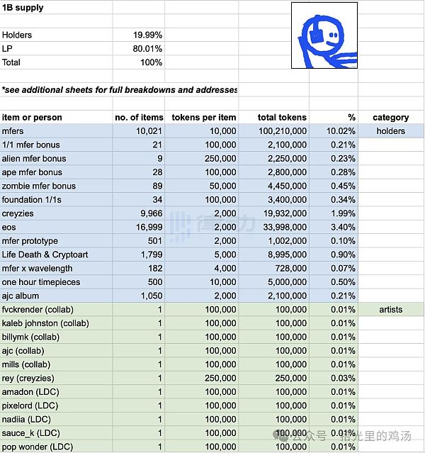 在 mfercoin 空投细则中,mfers NFT 持有者以及与 mfers NFT 合作过的艺术家均能够获得空投分配。当然,尽管 mfercoin 在上线后半小时内就已经有了数倍涨幅,但在许多 mfer NFT 持有者拿到空投后的第一反应,还是「不值钱」。多数人都没有想到,自己将在第二天醒来后,进入「数钱模式」。
